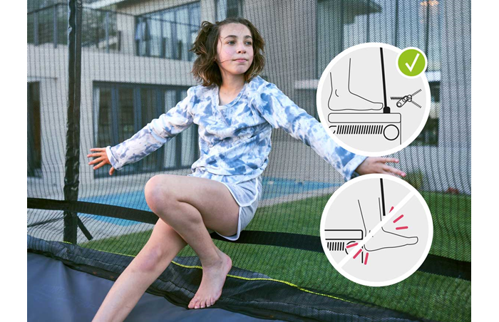 If there is a gap kids find it, so we made it impossible to access the springs when jumping or just chilling on the trampoline. Thick safety pads prevent landing directly on springs or frame parts. For added safety we’ve even covered the poles that are outside the net in high quality foam.